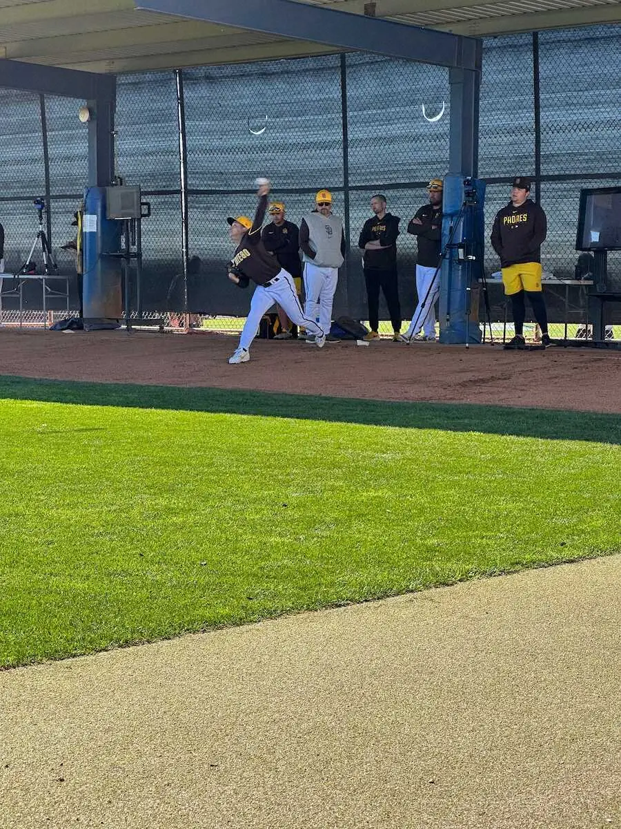 パドレスの松井裕樹投手(28)が13日(日本時間14日)、キャンプイン後初めてブルペン投球を行った。投球練習を始めると、ダルビッシュ有投手(37)も加わり、侍コンビが並び揃って投げた光景はまさに壮観。ダルビッシュが22球、松井が37球。受けた捕手からはともに感嘆の声が上がる見応える投球練習となった。