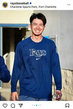 レイズの球団公式インスタグラムが13日(日本時間14日)に更新され、マイナー契約の招待選手としてキャンプに参加する上沢直之投手(30)の姿を紹介した。