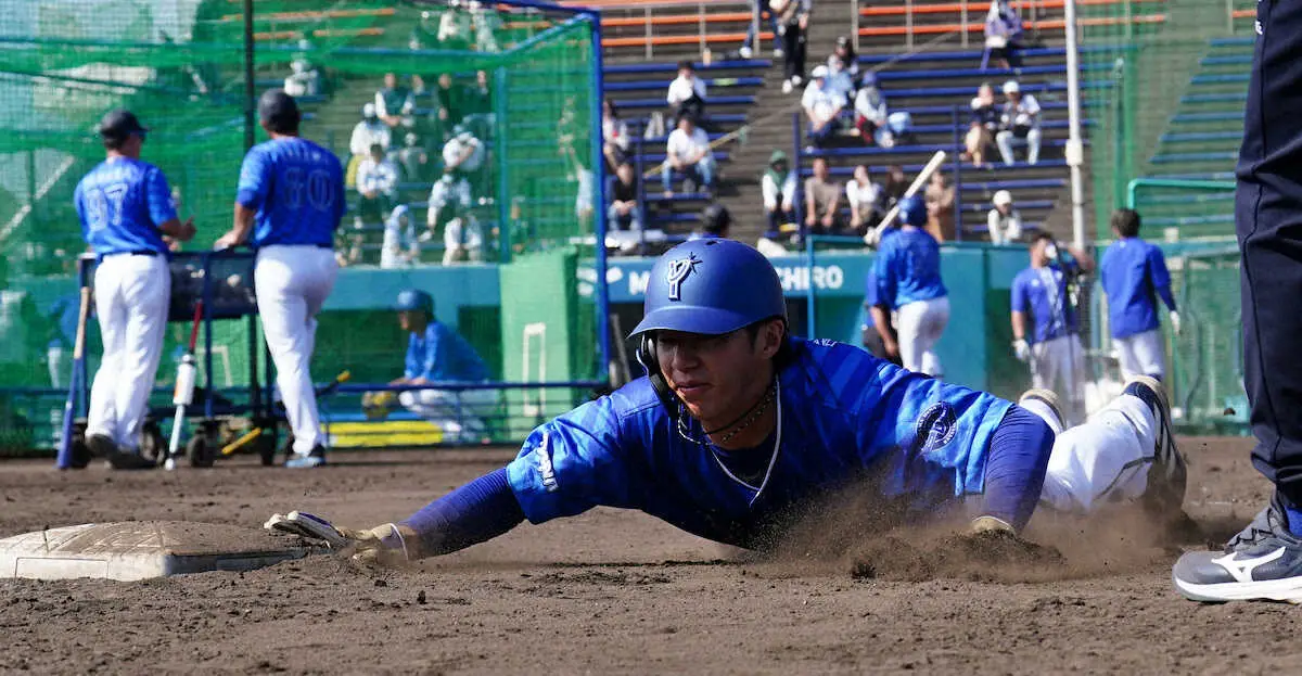 走塁練習するDeNA・度会(撮影・島崎 忠彦)