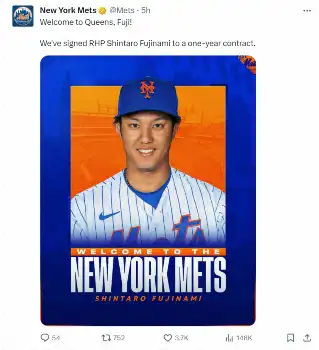 メッツ 藤浪晋太郎との1年契約を正式発表 千賀と共闘
