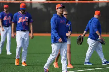 メッツの千賀は投内連係や守備練習と軽めのメニューでキャンプ初日を過ごした。2年目を迎え「余裕を持っている自分がいるのも分かったし、楽に入れた」。