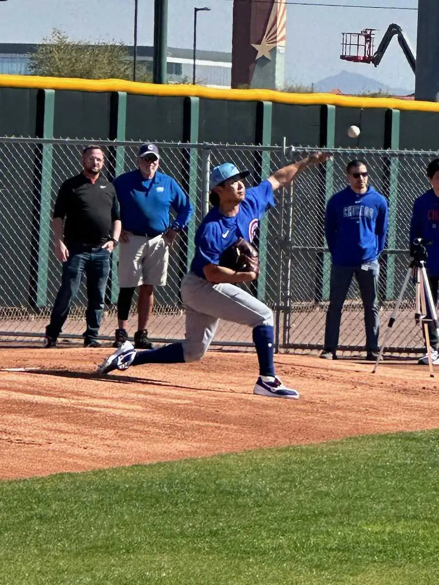 キャンプ2度目のブルペン投球を行うカブス・今永