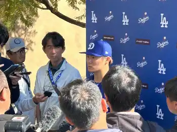 山本は、日本との違いは特に感じないと笑顔を見せ「やりやすいですよ。みんな(自分に)合わせてくれて」とチームに感謝。大谷とも「ロッカーが近い(隣)ので。いろいろ話しています」と明かした。「いい感じです」と力強く語って練習に向かった山本の背中を見ながら「奇跡だよ!会いに来てくれた」と少年のように目を輝かせた。