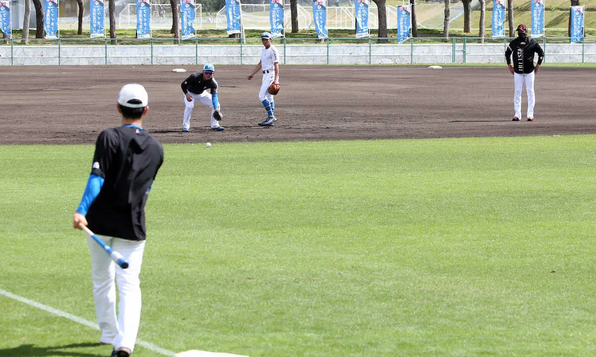 守備練習を行う細川(撮影・高橋 茂夫) Photo by スポニチ 日本ハム エスコン対策“逆ノック” 外野から内野向け打球 ギャラリーで見る この記事のフォト 2024年02月20日の画像一覧 もっと見る 2024年02月20日の画像をもっと見る