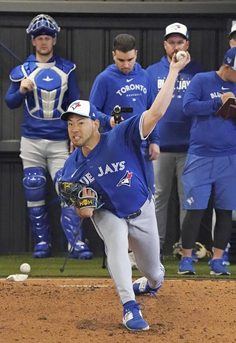 ブルージェイズ・雄星 チェンジアップ緩急つけ35球、右打者想定し横曲がりの「スイーパー」も試す