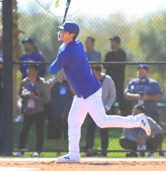 ドジャース・大谷 背筋伸ばした新フォームで“移籍1号” 初ライブBP、4スイングで低弾道締め