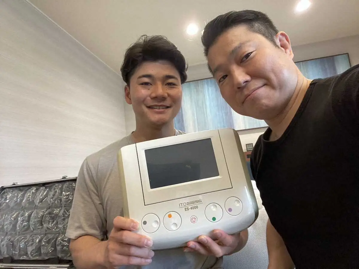 そこで羽田野氏がメーカーへ相談。伊藤超短波の荒井慧スポーツ事業推進統括は「信頼できる治療家さんに貸し出すことで、最高の治療効果を出してもらえる」と電気治療機器の提供を快諾した。「ハイボルト療法」と呼ばれる高電圧を患部に流すことで炎症を抑え、わずか2日後に通常歩行が可能となった。