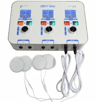 無償でのレンタル提供を受けた治療器を手に記念撮影する(左から)清宮、羽田野トレーナー(提供写真)