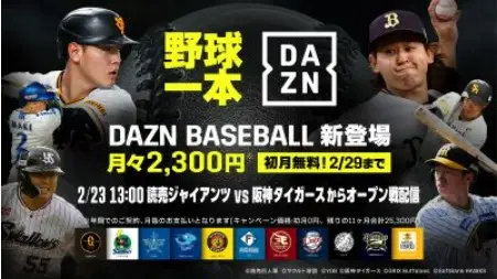 DAZNでは2月1日より、プロ野球に特化した「野球一本」の新プラン「DAZN BASEBALL」のサービスを開始。春季キャンプ、オープン戦はもちろん、公式戦、交流戦、クライマックスシリーズのライブ配信、さらにオリジナルコンテンツなどが月々2,300円(年間27,600円)で視聴可能となる。