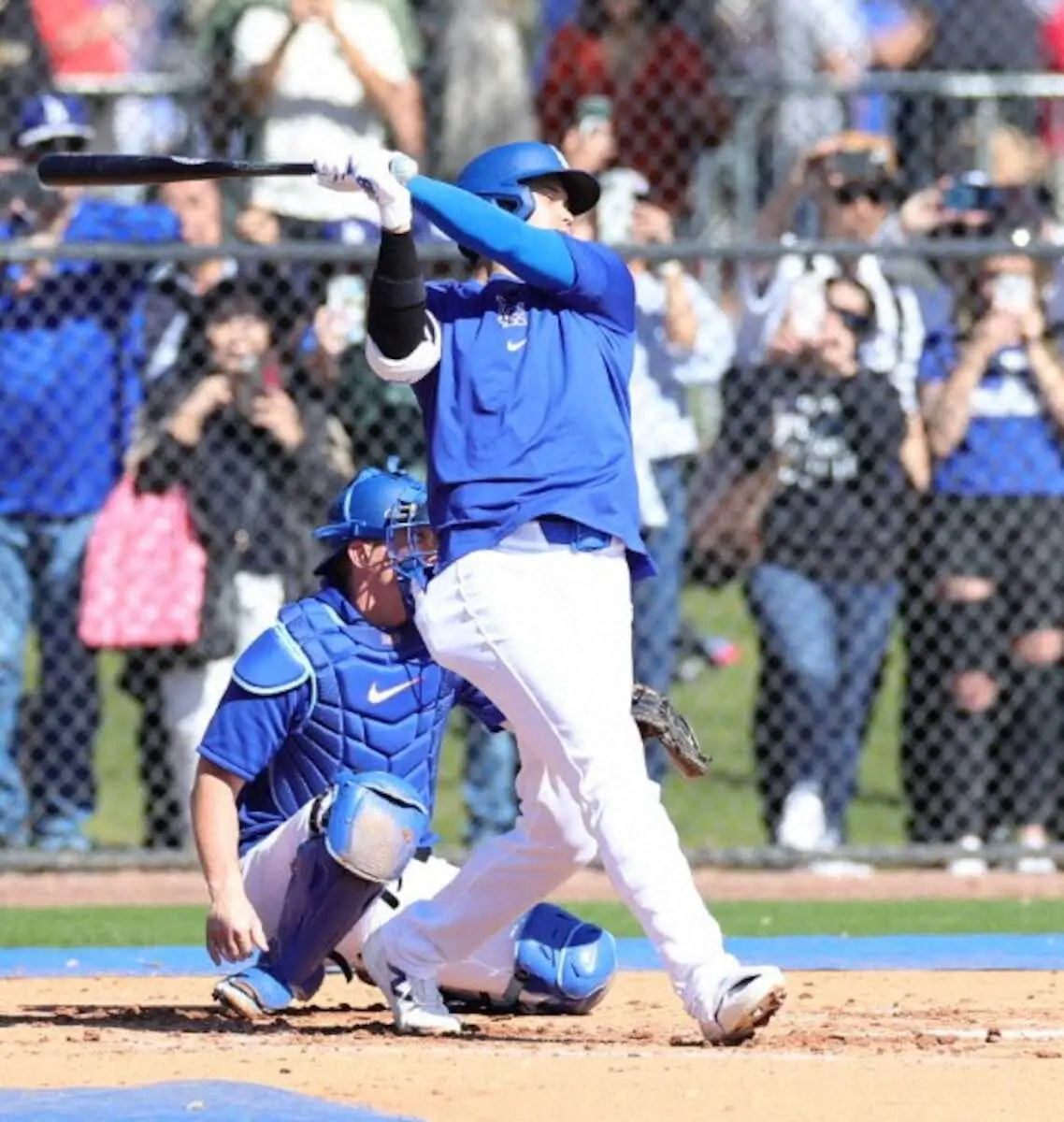 ドジャースの大谷翔平投手(29)が21日(日本時間22日)、今キャンプ2度目となる、実戦形式で投手と対戦するライブBPに臨んだ。2打席に立ち、四球と二ゴロで本塁打はなかった。練習後に母校・花巻東の後輩にあたり、米カリフォルニア州のスタンフォード大への進学を決めた佐々木麟太郎内野手(3年)について言及。