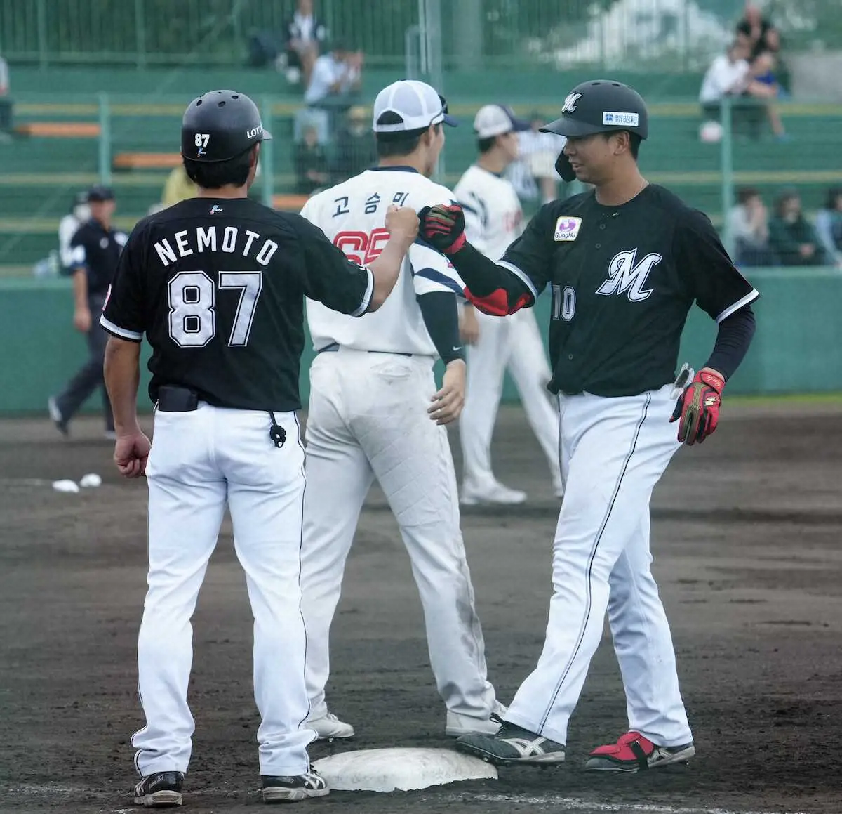 ロッテのドラフト1位・上田(明大)が、両親が観戦した練習試合・韓国ロッテ戦に「3番・一塁」で出場。3安打2打点をマークした。
