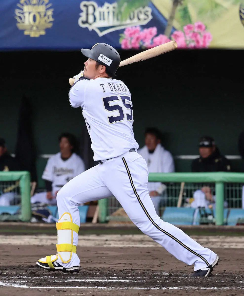 オリ・T―岡田 今春初実戦の初打席で豪快右越えソロ 「僕の中ではゴロッと変えた」打撃フォーム