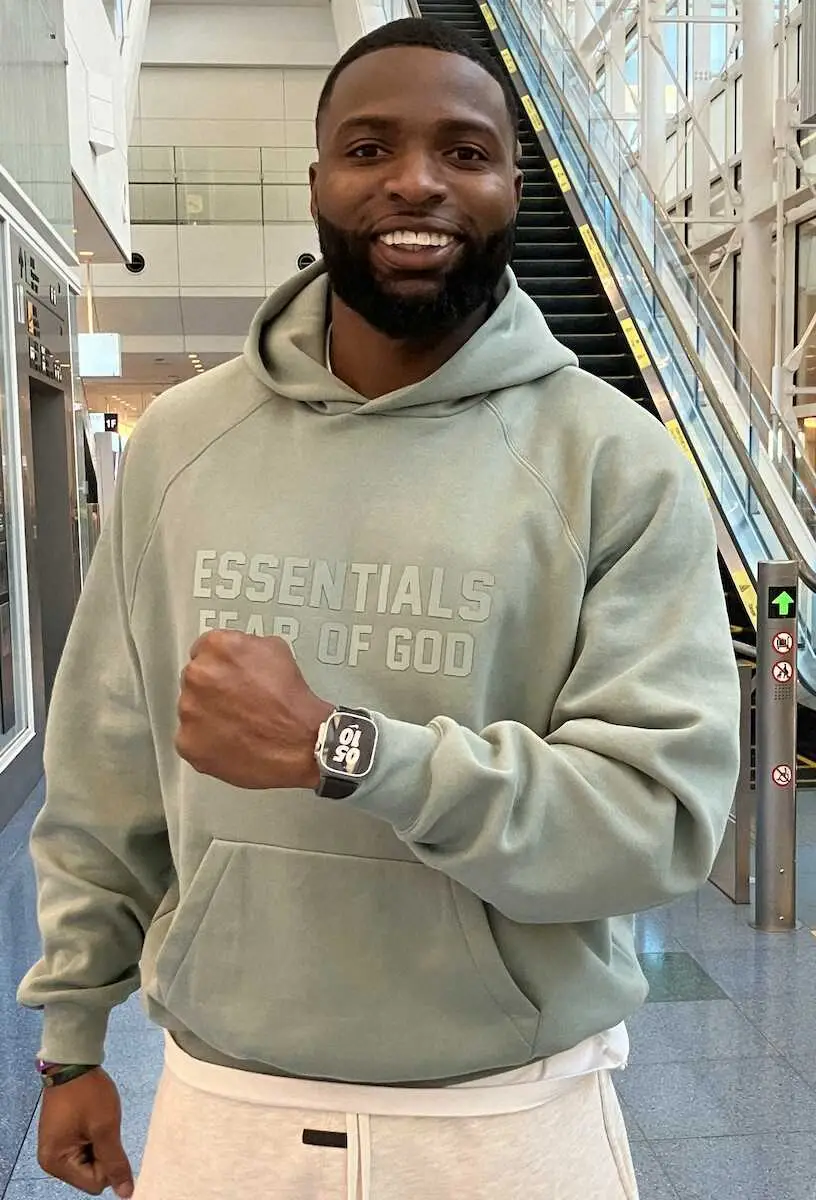 羽田着の便で来日したロッテのグレゴリー・ポランコ外野手(球団提供)