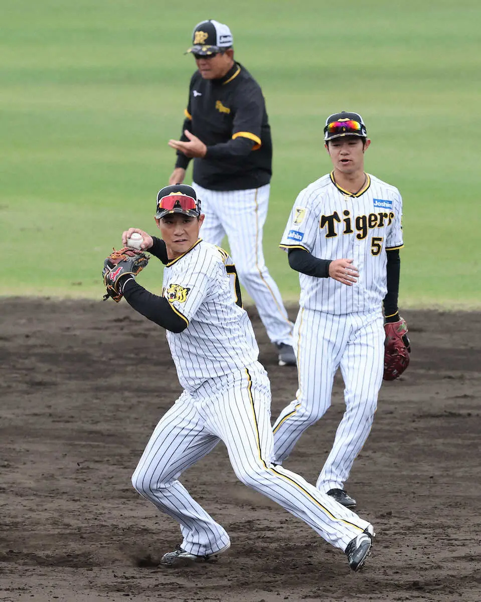 阪神キャンプ打ち上げ前日、午前最後の練習は「部門別個別練習」だった。外野手はクッション処理などを行い、内野手は併殺練習だった。ヘッドコーチ・平田勝男がストップウオッチでタイムを計りながら行った。