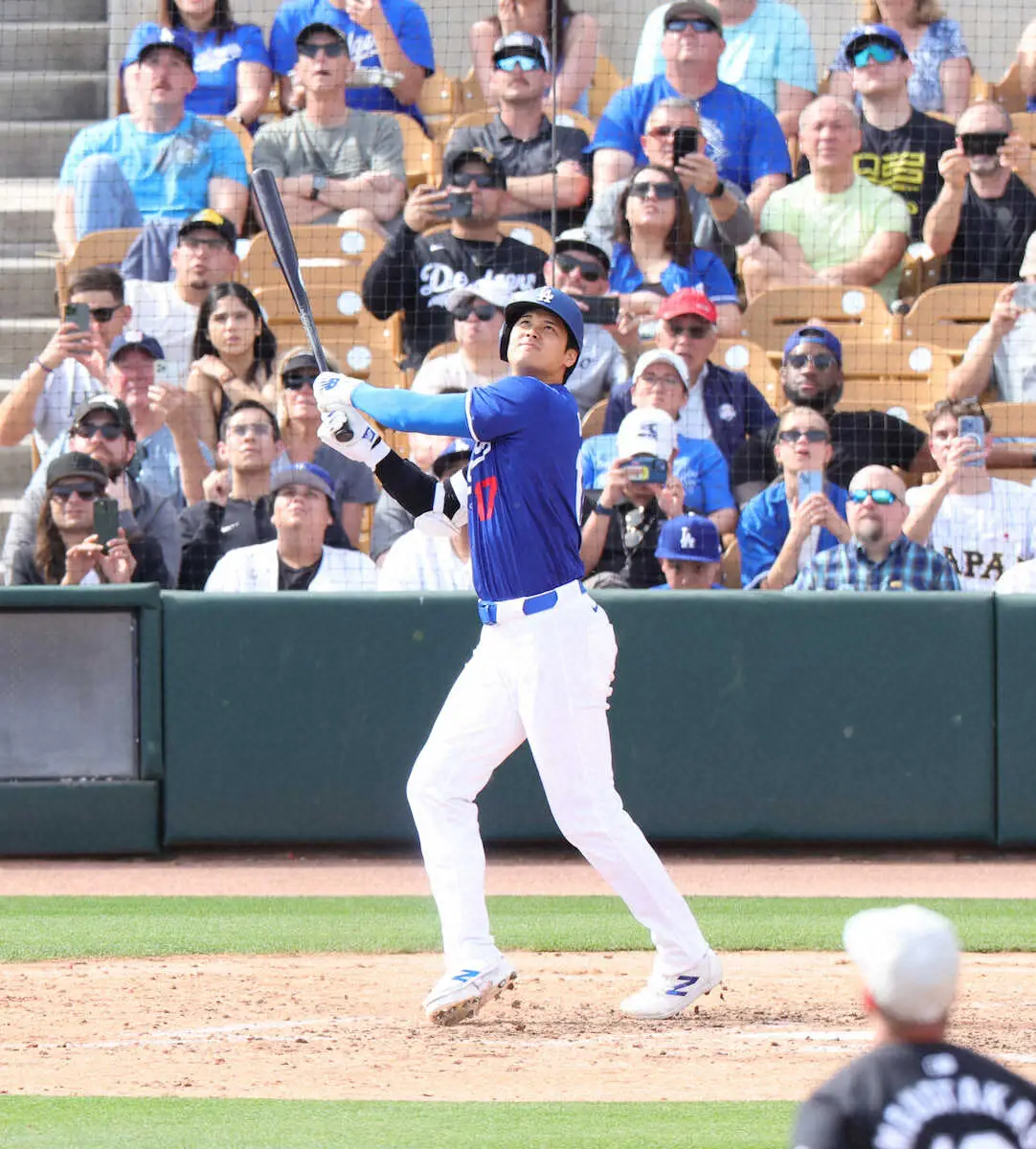 ドジャースの大谷翔平投手(29)が27日(日本時間28日)、ホワイトソックス戦に「2番・DH」でオープン戦初出場。昨年9月3日以来177日ぶり、移籍後初の実戦で第3打席に左越え2ランを放った。