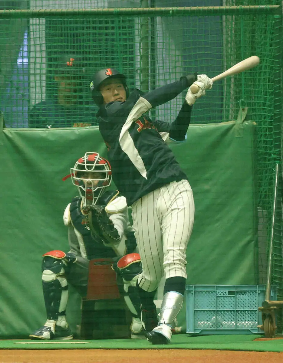 大学生4人が招集され、今秋ドラフト1位候補の青学大・西川史礁外野手(3年=龍谷大平安)も「侍デビュー」に向けて練習した。