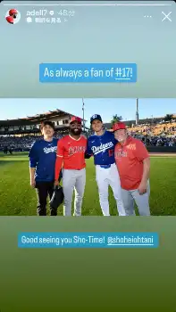 アデルもストーリーズに大谷との再会ショットを投稿し「会えて嬉しいよ」とコメントを添えた。