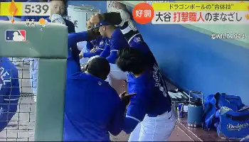 大谷にとって「ドラゴンボール」はチームメートとの「共通語」だった。米国や、中南米出身の選手にも大ファンが多く、チームメートと「かめはめ波」ポーズでじゃれ合う姿もあった。過去には雑誌「Number」のインタビューで「カリン様の仙豆が欲しいです」と語ったことも。今春はクレイトン・マッカロー一塁コーチと一塁上でヘルメットをぶつけ合うのもおなじみで、同コーチは「2人で“一塁で何かやろう”と話し合って決めた」と明かした。こちらは「ヘッドバンプ」と命名されており「彼(1メートル93)は背が高いので、私(1メートル78)のために身をかがめなくてはいけない。当面は続けていくだろう」と笑った。