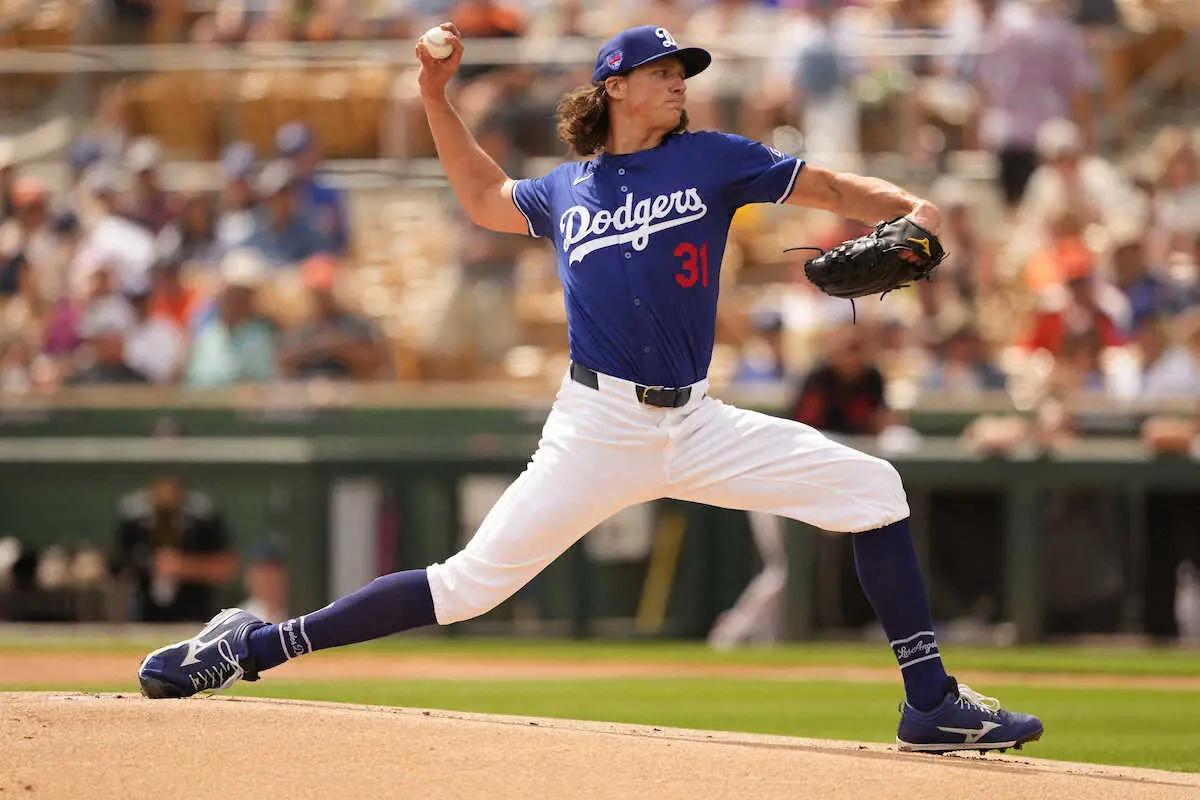 ドジャースの開幕投手を務めるタイラー・グラスノー投手(30)が12日(日本時間13日)、アリゾナ州グレンデールで行われたジャイアンツとのオープン戦に先発。5回1/3を無安打8奪三振とほぼ完璧な投球を披露した。