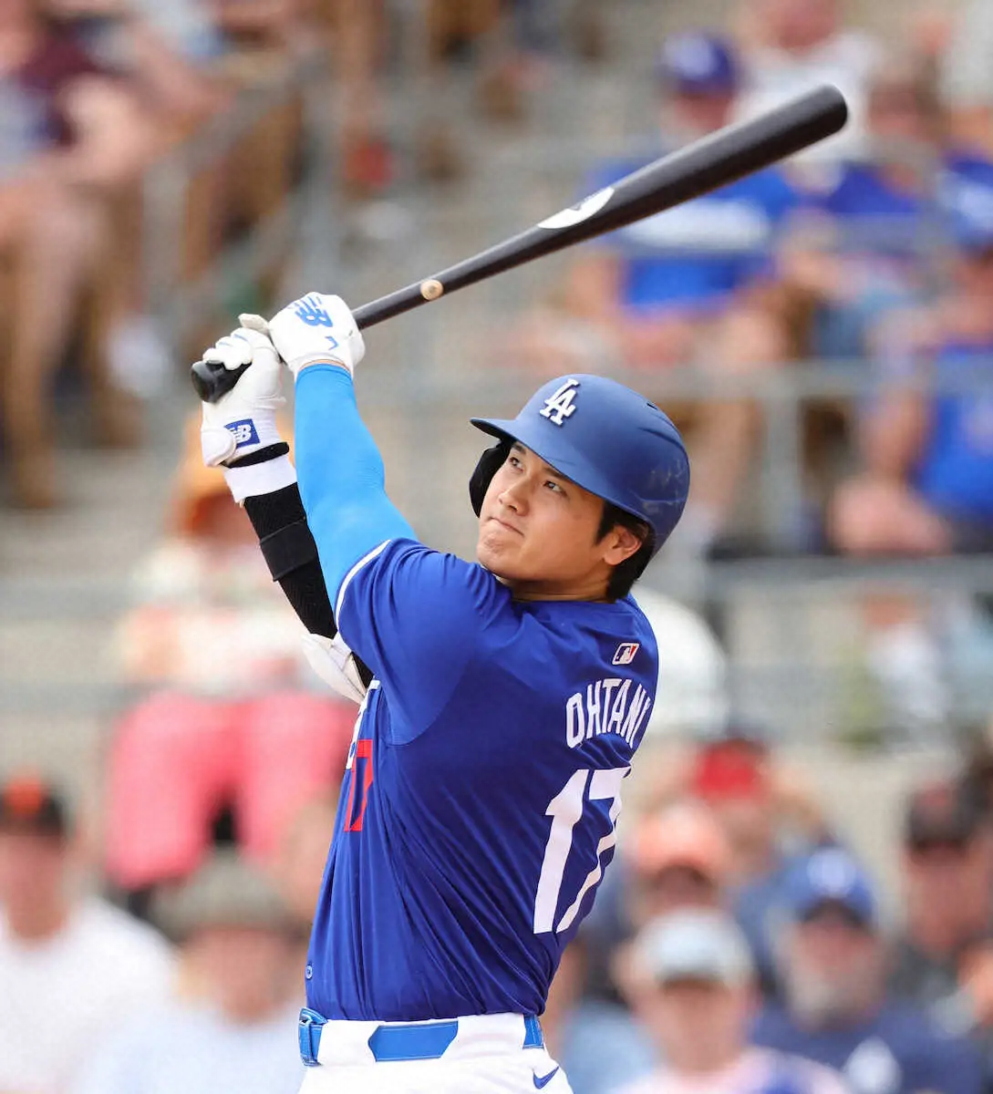 ドジャースの大谷翔平投手(29)が13日(日本時間14日)、アリゾナ州グレンデールでのマリナーズとのオープン戦に「2番・DH」で先発出場。第1打席は“2打席連発”となる3号ソロと思われたが、右翼への大飛球に倒れた。