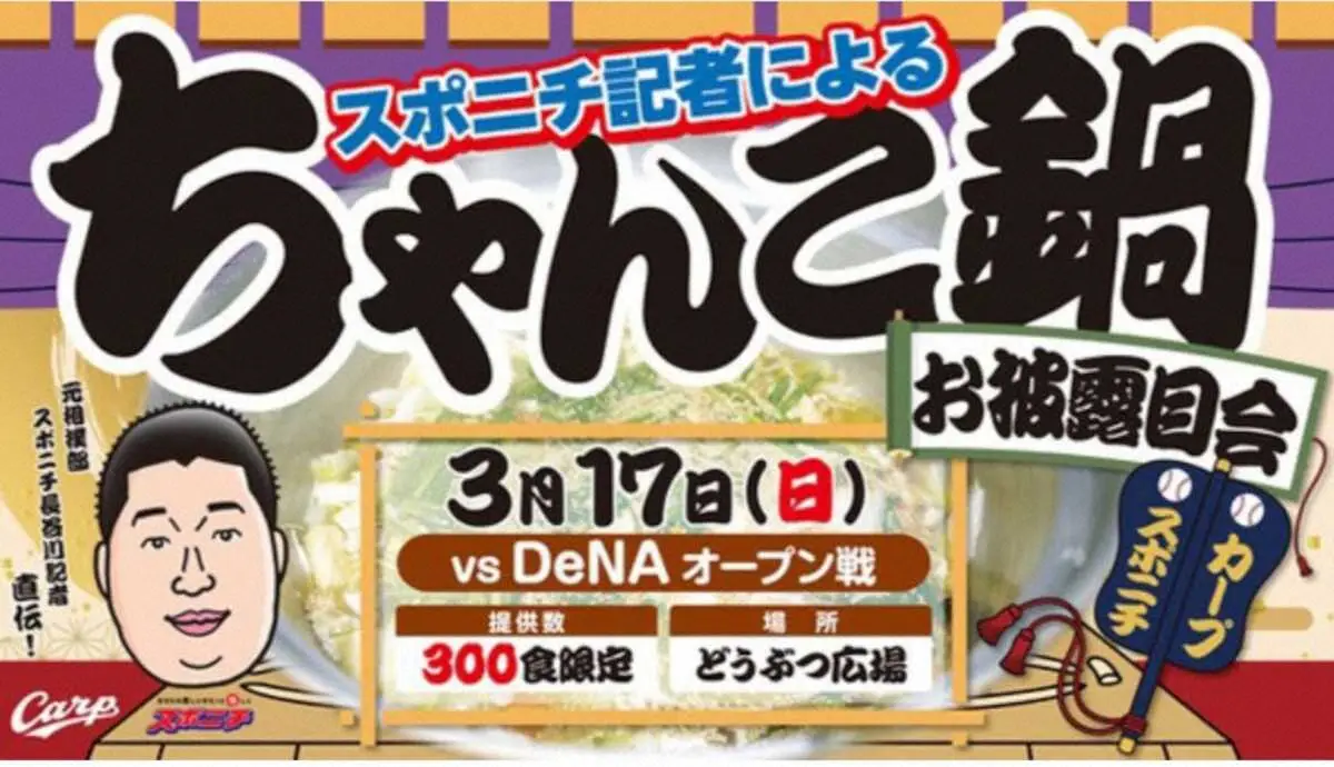 広島は、17日のDeNA戦(マツダ)で球団とスポニチの共同企画「スポニチ記者特製 塩ちゃんこ鍋イベント」を開催すると発表した。