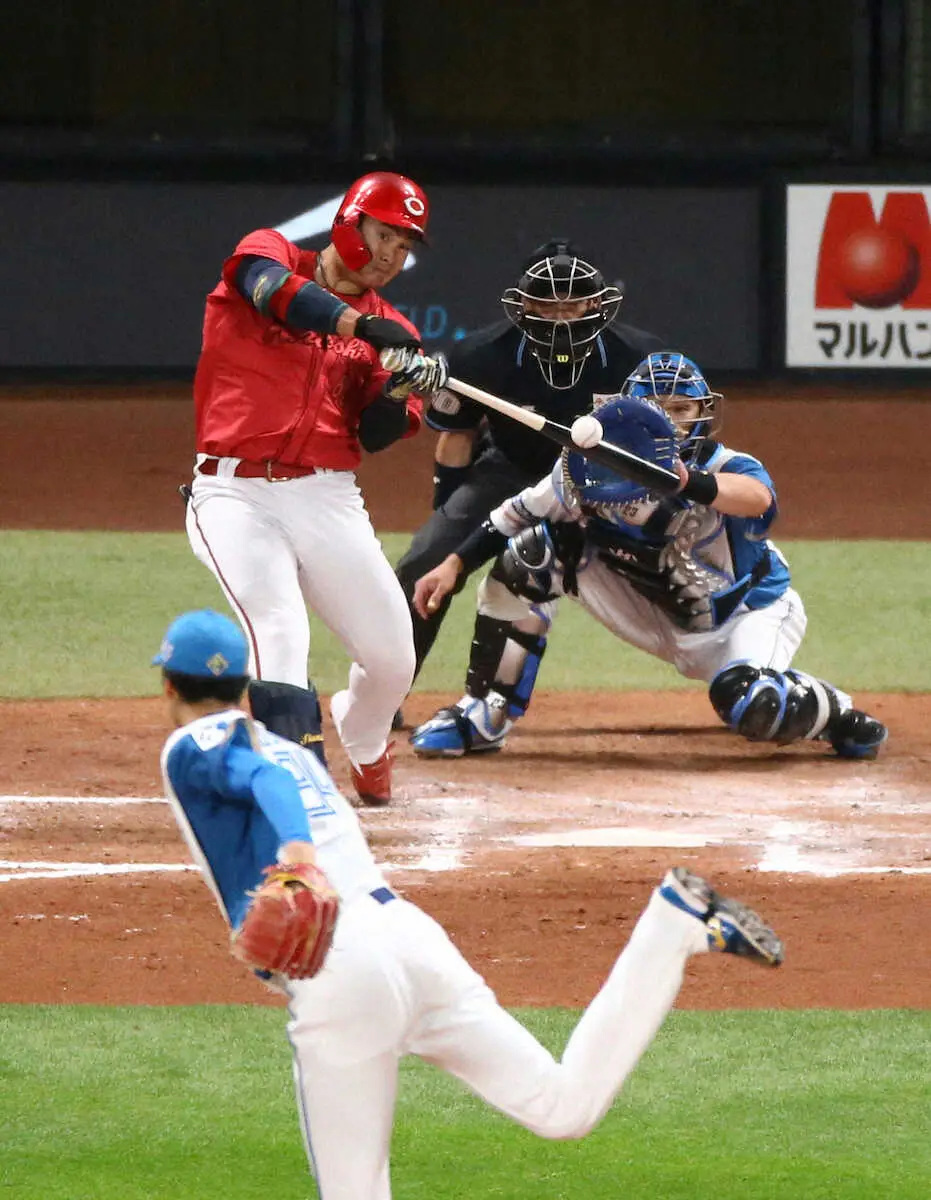 昨季は公式戦10試合出場で本塁打なし。そこでオフ期間にはベテラン松山らとの合同自主トレで“脱力打法”に取り組み、長打力アップをテーマに掲げて磨きをかけた。その成果をこの日の結果に反映。充実の内容に新井監督も目を細めた。