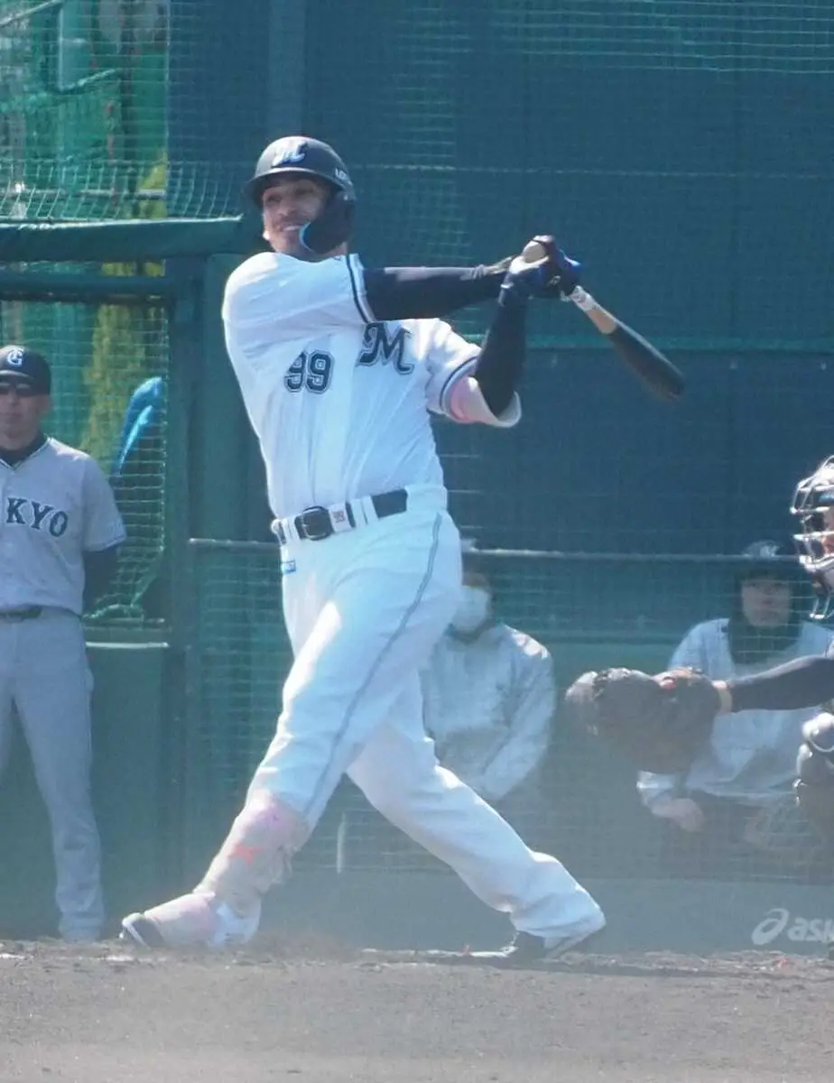 イースタン春季教育リーグ巨人戦の3回の第2打席で左前打を放つロッテ・ソト