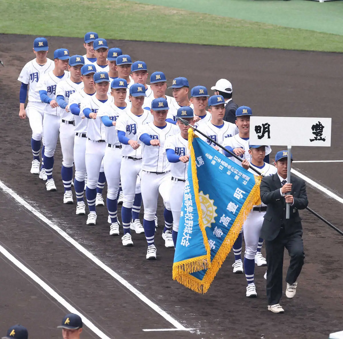 準優勝した21年以来の出場となる明豊(大分)ナインも元気よく行進。山内真南斗主将(3年)は「相手に勝ちたい思いが強くなりました」と気が引き締まった様子。今大会から低反発の新基準金属バットが導入される。打撃面にフォーカスされがちだが、「どれだけ守れるか。しっかり対応したい」と伝統の堅守で駆け上がるつもりだ。