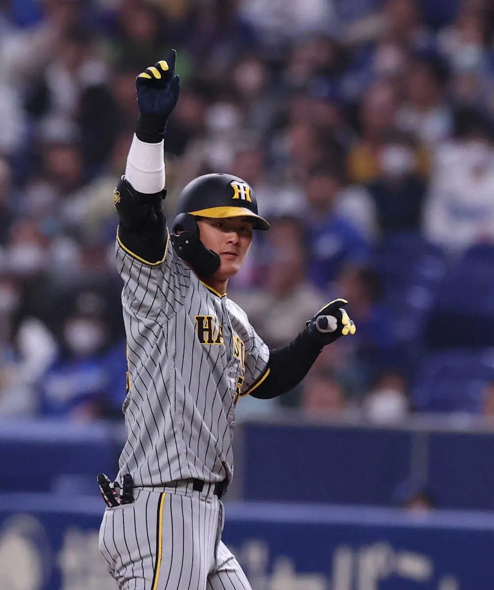 阪神・前川は初球スプリットにバットを折っても一、二塁間を抜いた。昨季9試合で対戦防御率0・00を許したマルティネスに自責点をつけ、1点差に迫る一打で存在感を示した。