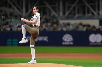 ド軍のユニホームにレギンスのようなタイツをはき、白のハイソックスを膝上まで伸ばしたスタイルで足を上げて投げ込んだ。ドラマ「ペーパー・ハウス・コリア」などに出演し、実は大谷と同じ1994年7月5日生まれ。際立つ美貌と思わぬ共通点に、SNSは盛り上がりを見せた。