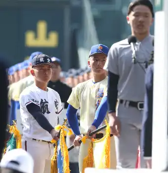 <選抜高校野球・開会式> 選手宣誓時に校旗を持ち集まった星稜・芦硲主将と日本航空石川・宝田主将 (撮影・亀井 直樹) Photo by スポニチ 【センバツ】星稜が2回に先制!2死一、三塁から重盗を仕掛けて三走・専徒… ギャラリーで見る この記事のフォト 2024年03月18日の画像一覧 もっと見る 2024年03月18日の画像をもっと見る