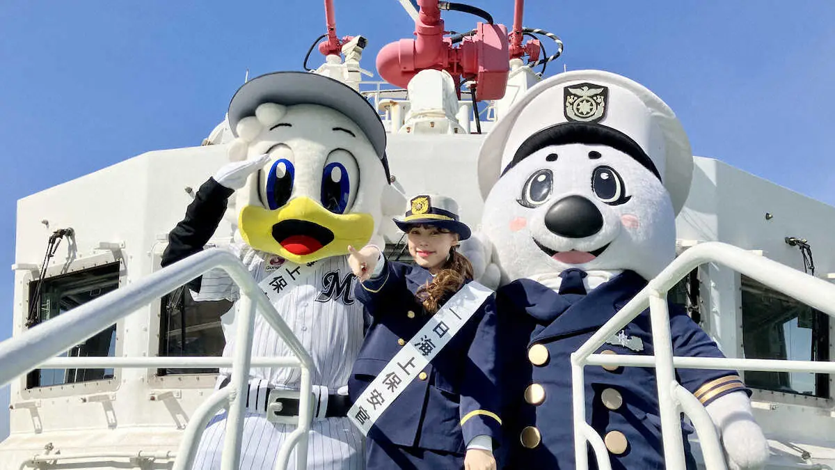 マーくん&NAJUが一日海上保安官 ロッテ選手のポスター起用10周年を記念