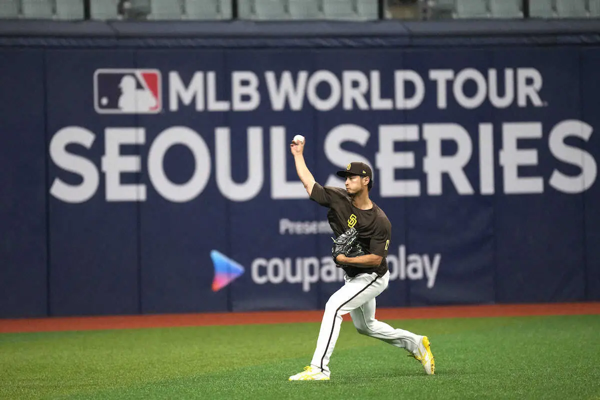 開幕に向けて調整するパドレス・ダルビッシュ(AP)