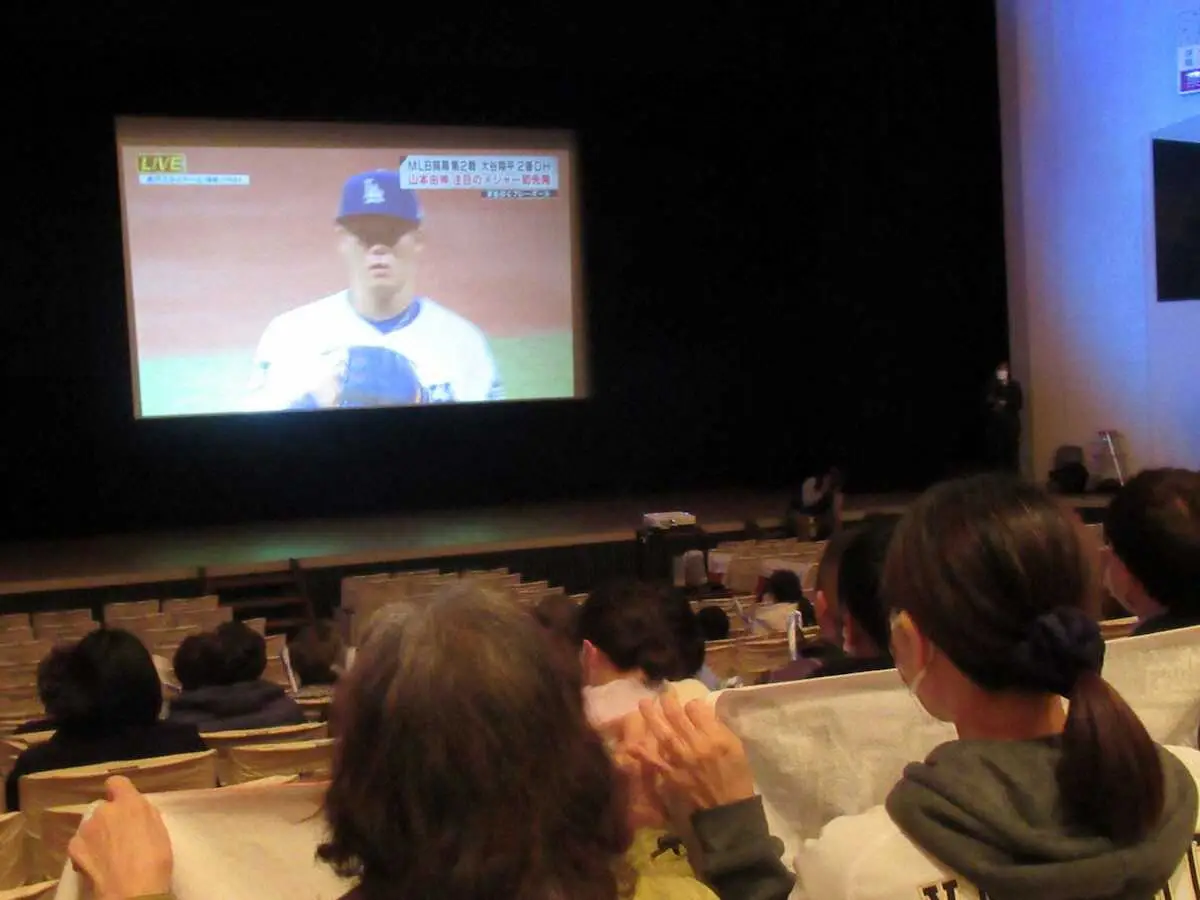 ドジャースの山本由伸投手(25)がメジャーデビューを果たした21日、地元岡山県備前市の備前市民センターでパブリックビューイング(PV)が開催され、約100人が熱い声援を送った。