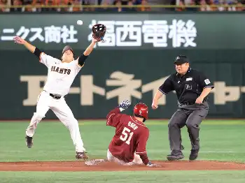 東京ドームの二塁付近で何か起きる!?吉川とオドーア抱擁&敷田塁審が転倒… 東京Dどよめき