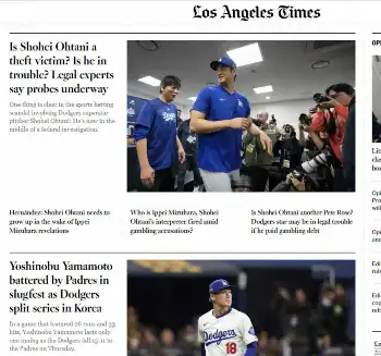 水原一平氏の違法賭博疑惑について報じるロサンゼルス・タイムズ電子版(同紙公式サイトから) 大谷に隠れての巨額送金は可能?不可能? 水原一平氏が口座IDとパスワー… ギャラリーで見る この記事のフォト 2024年03月23日の画像一覧 もっと見る 2024年03月23日の画像をもっと見る