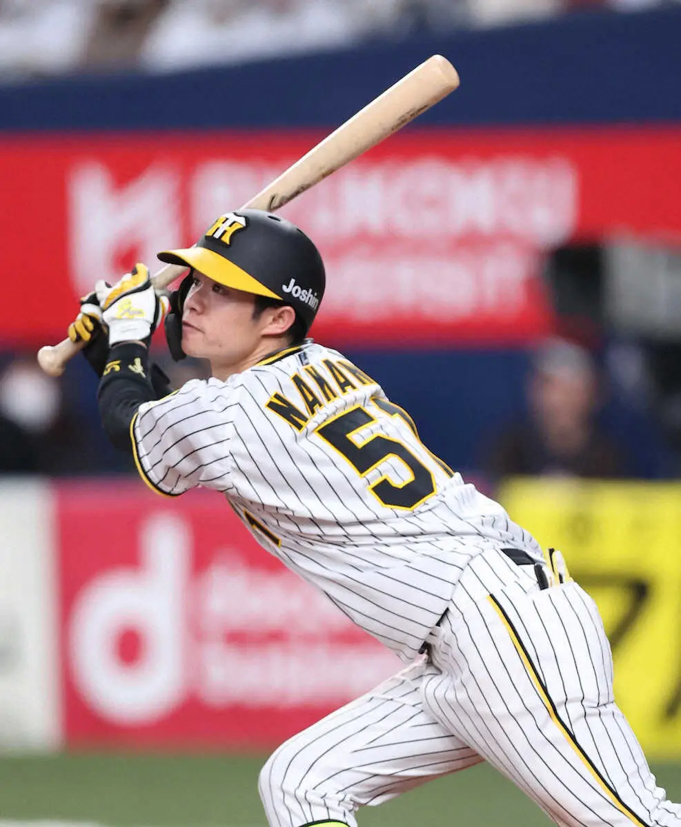 自身よりも、むしろスタンドに安堵(あんど)の空気が広がったのは1番でスタメン出場した初回の第1打席だった。カスティーヨの150キロ直球を逆方向にはじき返す左前打。8日のヤクルト戦(甲子園)の第2打席に中前打を放って以来の「H」ランプをともすと、5回の第3打席も1死一、二塁で再び直球を左前に運んだ。