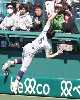 <青森山田・広陵>6回、広陵・高尾の三邪飛を好捕する青森山田・菊池(撮影・平嶋 理子)