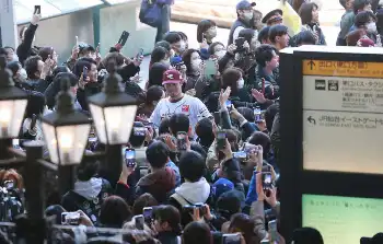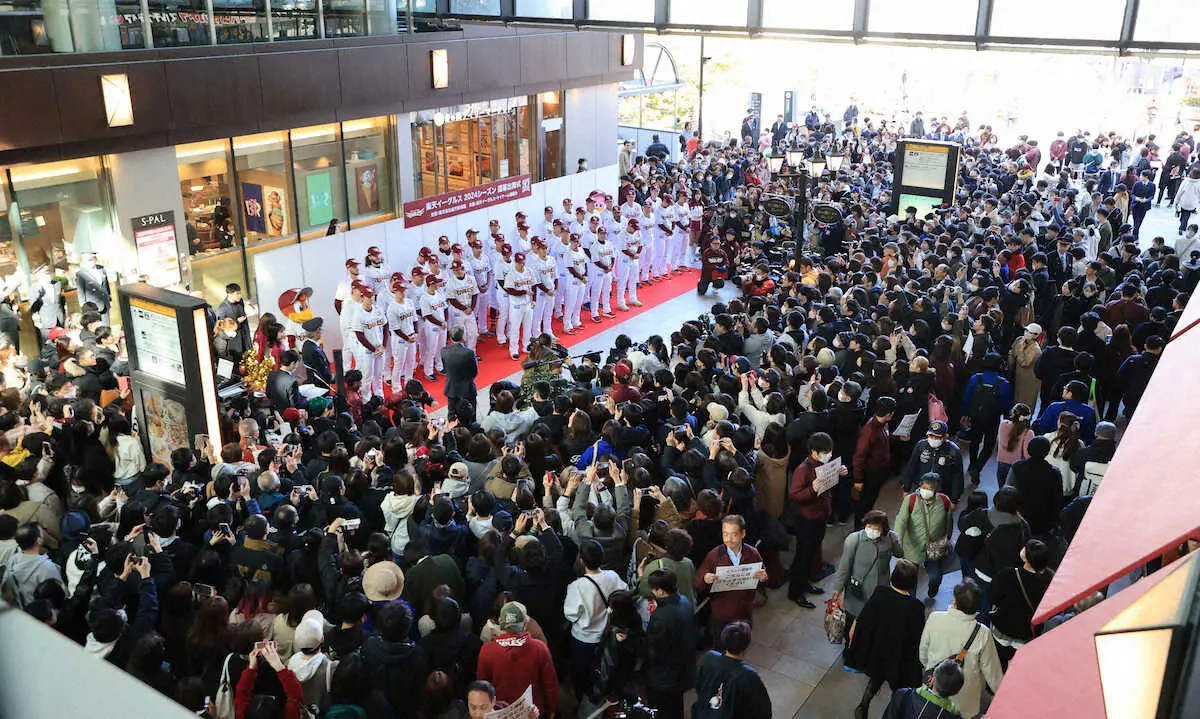 楽天が仙台駅で出陣式を行い、約1000人のファンが集結