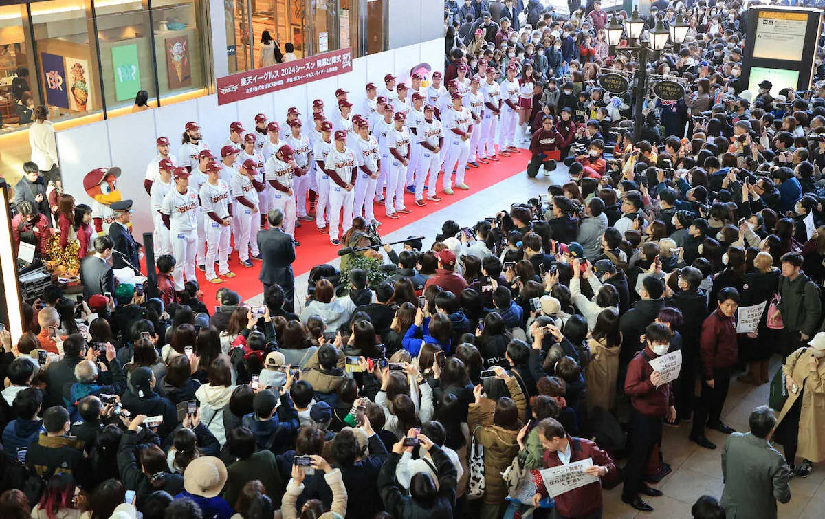 開幕戦は昨季7試合で6敗を喫し、21年から9連敗中の西武・今井を迎え撃つ。「今年は今年で違う流れだったり、風が吹くと思う。開幕戦でなんとか崩したい」。仙台駅での出陣式には約1000人の楽天ファンが集結。「今江さん、頼んだよ!」。温かい声援を背中で受け取った。(花里 雄太)