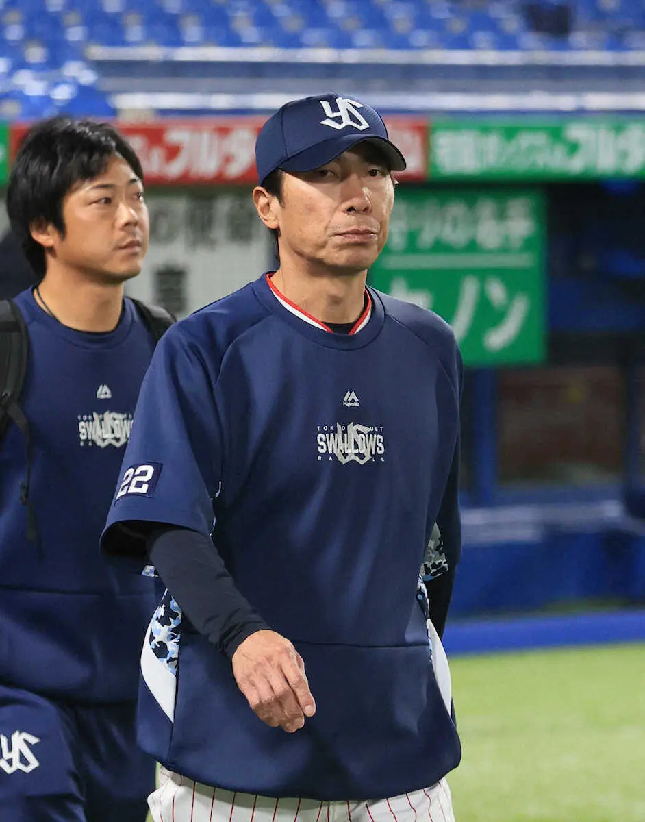 <ヤ・中>引き分けに終わり引き揚げるヤクルト・高津監督(撮影・尾崎 有希)