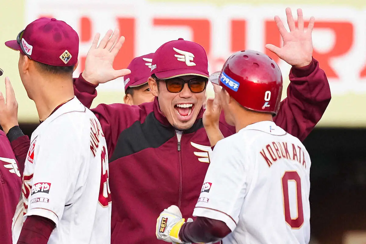 開幕2連敗で迎えた3戦目。3月31日の西武戦3―3で迎えた延長11回1死一、三塁。小深田が左飛を放った瞬間、選手やコーチ陣と一緒にベンチから飛び出さんばかりに身を乗り出して「いけーーー!」と叫んでいた。その姿は12球団最年少監督らしいエネルギーに溢れていた。