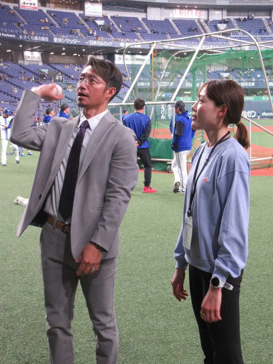 「アレ」達成の前田穂南、鳥谷敬氏から投げ方教わる 阪神ホーム開幕戦の始球式に登場