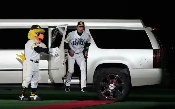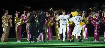 その後、小久保裕紀監督は若かりし頃の自身の映像が流れる中、指揮官がリムジンで登場。こちらはタイムトラベルを意識し、映画「バック・トゥ・ザ・フューチャー」のテーマ曲に乗って大トリで姿を現し、大きな歓声を浴びていた。