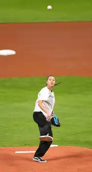 東京五輪スケボー銀・開心那 見事ノーバン投球「100点です」 エスコンF本拠地開幕で始球式