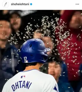 大谷 ドジャース1号“ひまわりの種シャワー”をインスタで歓喜「特別な瞬間」