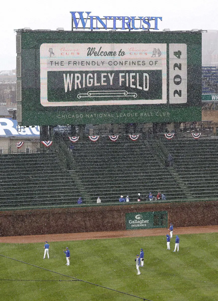 メジャーの長い歴史を感じながら、大谷が打席に向かう。開場は1914年。フェンウェイ・パークに次いで2番目に古く、外野フェンスにはツタが生い茂る景観。シカゴは風の強さから「風の街」とも呼ばれ、4月のこの時季は最低気温の平均が5度程度と極寒での戦いを強いられる。