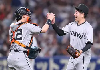 巨人・大勢が2点リードの9回を3者連続空振り三振で締め、今季初セーブ。三好の6球目に自己最速を1キロ更新する160キロの直球を投げ込むと田中の初球にも160キロを計測した。ともにファウルとなり「空振りが取りたかった」と悔しがったが、チームの日本人投手では初の160キロ超えに「そこが全てではないですけど一つの目標だった。満足せずにこれからも頑張りたい」と目を輝かせた。