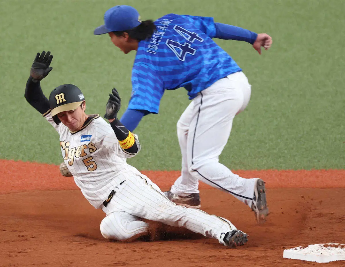 捕手の送球がそれたこともあって、悠々と二塁にスライディングを決めた。150盗塁は阪神では5人目で、669試合目は赤星憲広、吉田義男に次いで3番目に速いペース。「ここまで積み重ねてきた結果。たくさんの人に感謝したい」とかみしめた。