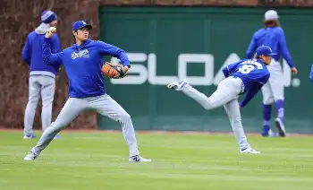 ドジャース・大谷 試合前に由伸と並んで5度目のキャッチボール 12、13メートルの距離で約12分間